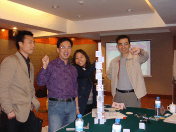浙江**是一支非常有活力、有激情的年青團隊,公司也非常注重人才的培養(yǎng),4月10、11日兩天特邀時代光華高級講師韓增海,為公司的中高層管理人員安排了兩天的培訓,雖然人數(shù)較少,只有12位管理人員參加,但現(xiàn)場的學習氛圍非常好,12位學員共分為三個組,角鐵隊、紅色娘子軍隊、四人幫隊,從一開始的組建團隊到課中的游戲互動,學員們都表現(xiàn)的非常積極,他們用課中學到管理知識運用到游戲互動中,感覺非常受用,真正體現(xiàn)了高效的團隊。