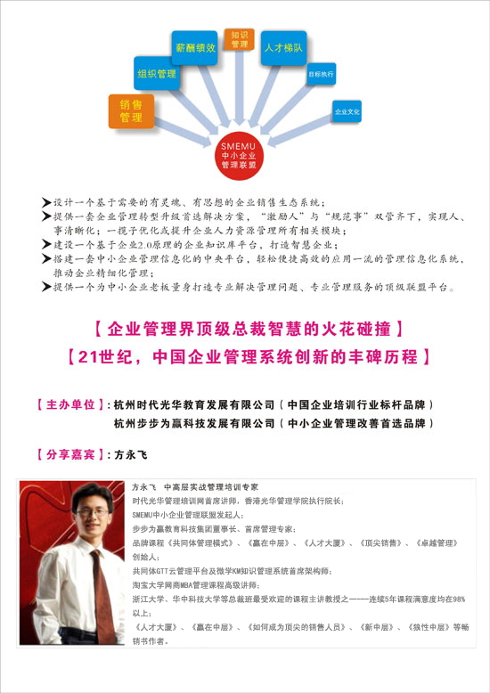 您的位置:首頁 > 資訊中心 > 光華動(dòng)態(tài) > 企業(yè)管理新模式總裁研討會(huì)邀請函