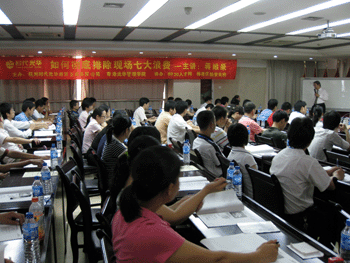 8月1日早晨,天空下著傾盆大雨,但是絲毫擋不住廣大學員聽課的熱情,冒著雨前來聽老師講課。蔣老師首先分析了目前市場環境和競爭態勢的改變,引出目前企業降低成本的迫切需要。降低成本最基本的就是徹底排除現場七大浪費,庫存的浪費、不合理運輸/搬運的浪費、等待的浪費、多余加工作業環節的浪費、多余動作的浪費、不良品的浪費、過多/過早的浪費。蔣老師運用豐富的案例深入淺出的講解了豐田企業成功的案例,豐田管理模式(TPS)和精益生產模式(LPS)。豐田精益化管理模式的精髓是全局觀點,去蕪存菁,精益求精,透過杜絕一切浪費以精簡生產流程,達成最佳品質、最低成本、最短前置期、最佳安全性、最高員工士氣的目標。