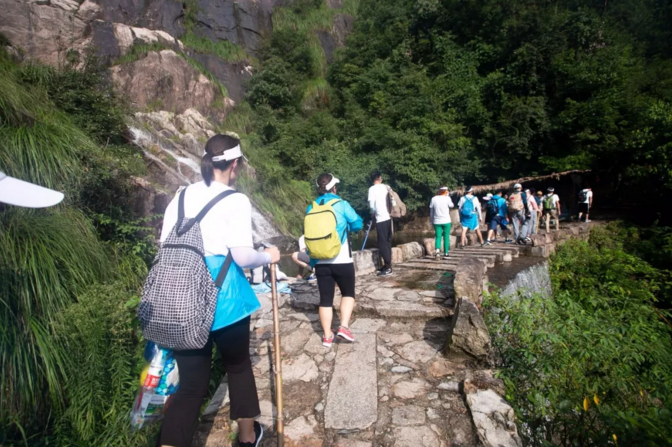 天空澄碧,遠山含黛,清風微拂。同學們個個熱情高漲,興致勃勃,在山腳下整裝待發。出發前,由領隊簡單介紹本次徽杭之旅,強調了爬山中的注意事項,提醒大家不要隨便離隊,時刻牢記安全第一,鼓勵大家成功登頂;另外還帶領著同學們一起游戲互動,培養學員間感情和團隊意識。