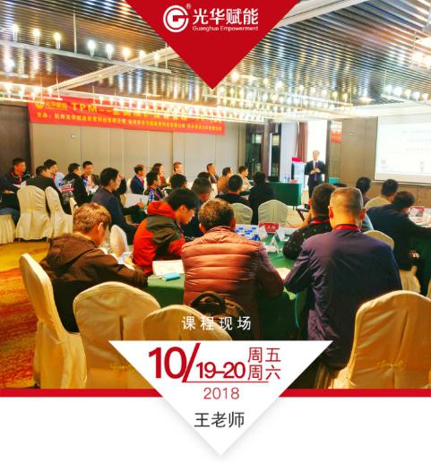 工作日求生存,好周末謀發展,好學的人早已來到王老師的公開課現場,從TPM管理中獲益,為企業全面提升企業的戰略人才儲備奠定良好的基礎!2018年10月19-20日,光華高級講師王國超老師在杭州書香世家酒店二樓香雪海廳獻上精彩的公開課程《TPM--全面維護設備管理》!
