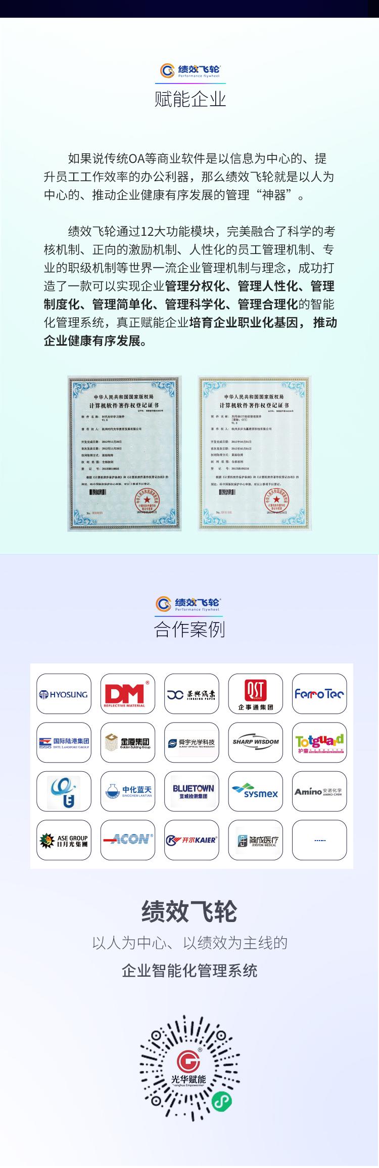 績效飛輪通過12大功能模塊,完美地融合了完美的考核機制,正向的激勵機制,人性化的員工管理機制,專業的職級機制等世界一流的企業管理機制與理念,成功打造了一款可以實現企業管理分權化、管理人性化、管理制度化、管理簡單化、管理科學化、管理合理化的智能化管理系統,真正賦能企業培育企業職業化基因,推動企業健康有序的發展。