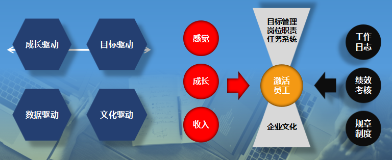 績效飛輪:本身就是一個正能量平臺,產生能量場,能夠激勵優秀的員工,鞭策落后的員工!一個好的平臺,一個好的軟件,它一定是這個平臺本身有發動機的。系統本身就有驅動的力量,激活員工主動去做好事情。所以,系統越用越好。從而實現系統的自動進化。