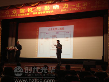 公眾演說的時候,從上臺的那一刻你就成了眾人的目光,光是克服了緊張是遠遠不夠的,還必須知道相應的講臺禮儀與規范。比如,如何上臺?有哪一些細節是該注意的?在臺上的時候,稿子應該怎么拿,手該怎么放,腳該如何站,麥克風該怎么拿?演說完畢如何退場?聲音該如何控制?如何應對臺下的眼光?這一些細小而又重要的問題都在課堂上用演練的方式傳授給了學員,學員通過上臺模擬,由臺下的學員進行點評,從而用使大家印象深刻。